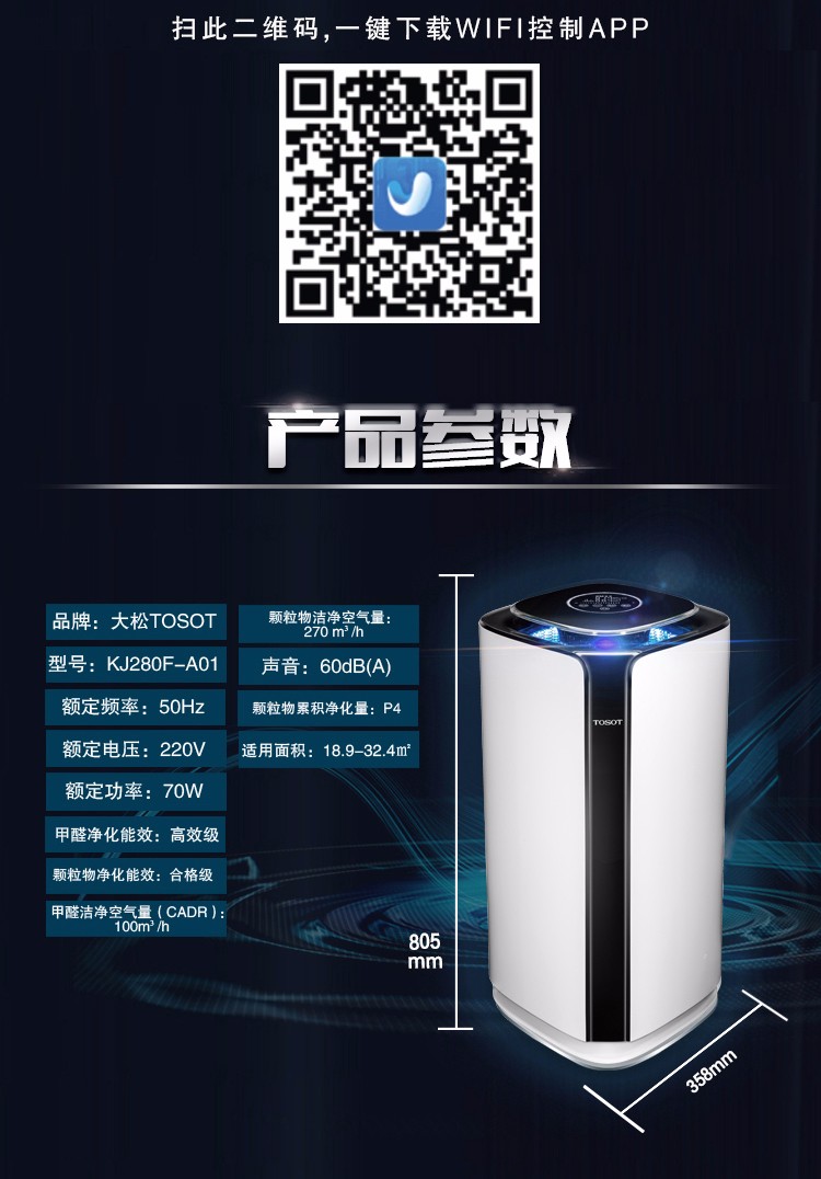 • 商品名称:大松空气净化器_三重净化除甲醛PM2.5_KJ280F-A01 顶(白色+黑色) 【TOSOT】_MP026005100