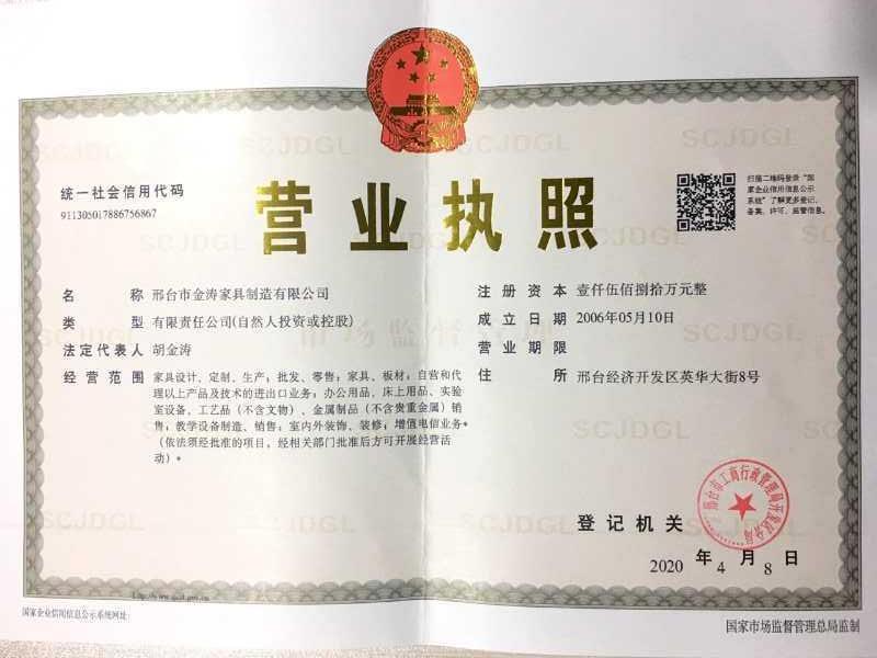 邢台市金涛家具制造有限公司成立于2006-05-10,法定代表人为胡金涛,注册资本为1580万元人民币,统一社会信用代码为911305017886756867,企业注册地址位于邢台经济开发区英华大街8号,所属行业为家具制造业,经营范围包含:家具设计、定制、生产;批发、零售:家具、板材;自营和代理以上产品及技术的进出口业务;办公用品、床上用品、实验室设备、工艺品(不含文物)、金属制品(不含贵重金属)销售;教学设备制造、销售;室内外装饰、装修;增值电信业务*(依法须经批准的项目,经相关部门批准后方可开展经营活动)。邢台市金涛家具制造有限公司目前的经营状态为存续(在营、开业、在册)。